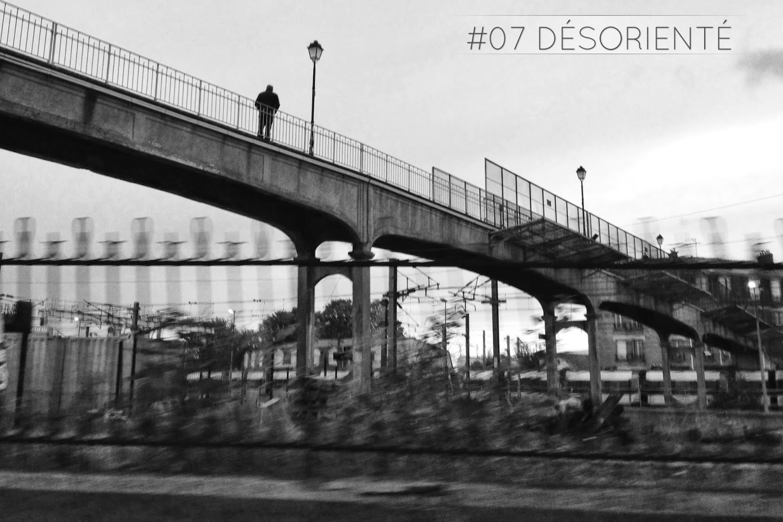 Sur l’exemple ci-dessus, la grille au premier plan est assez proche de mon objectif (enfin, de mon iPhone ^^), tandis que le sujet principal, le monsieur seul sur la passerelle, est assez éloigné.