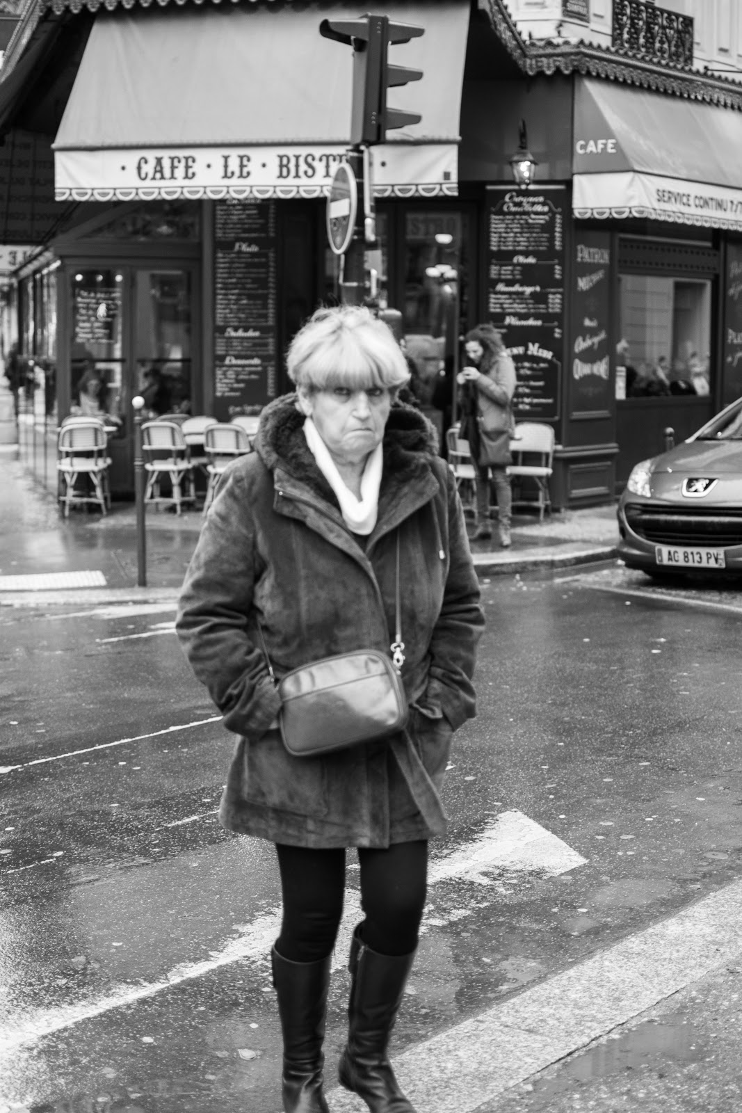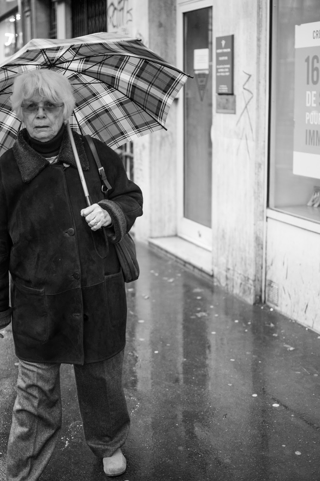 Tout d’abord, une dame qui a remarqué que je la prenais en photo. Ça ne lui a pas plu, et elle me l’a gentiment fait savoir par un simple « non non, pas de photo ». J’ai simplement répliqué « c’est pas vous madame, c’est le bâtiment dernière ». Cela a suffit. J’ai choisis de ne pas publier sa photo.