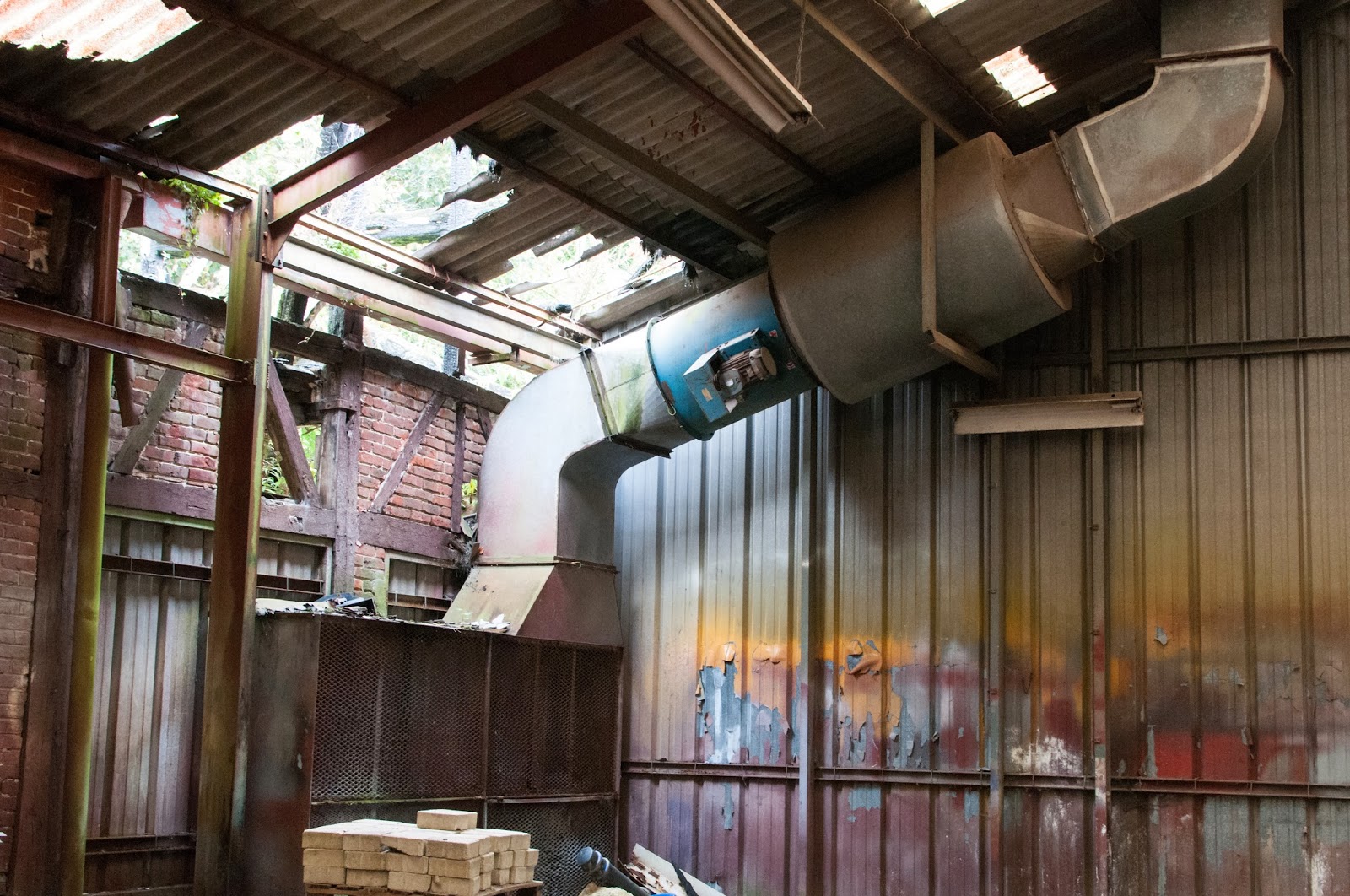 L’usine était intéressante, le toit était en mauvais état, ce qui permettait de laisser passer suffisamment de lumière pour se passer du flash.